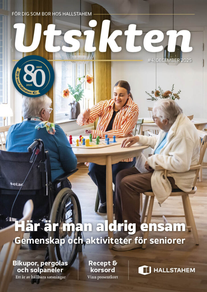 12 december, 2025Nu har vi delat ut decembernumret av Hallstahems tidning Utsikten. Där kan du läsa om seniorglädje, snöröjning , hur du källsorterar julsopor och se bilder från årets satsningar på energieffektivisering, grön utemiljö och mycket mer. Ta en fika och lös vårt korsord och kanske baka en kaka med recept från Håkans Hembageri. Här kan du läsa…