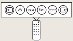 Du kan behöva byta källa på din tv, från analog-tv till digital-tv. Knappen du ska trycka på kan ha någon av symbolerna på bilden ovan.